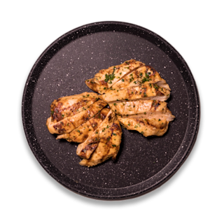 grilluð kjúklingabringa, stökkar sætar kartöflur, hjartasalat, baunum, humar froða